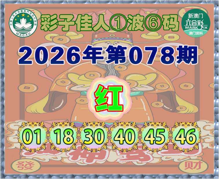 078期:『彩子佳人』 ①波⑥码【红波】开:鸡46准