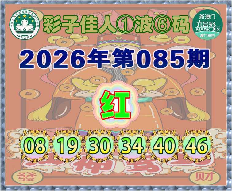 085期:『彩子佳人』 ①波⑥码【红波】开:鼠19准