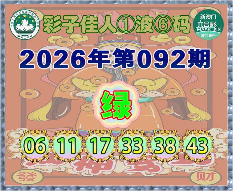 092期:『彩子佳人』 ①波⑥码【绿波】开:牛06准