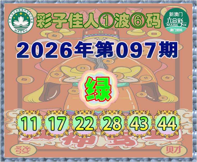 097期:『彩子佳人』 ①波⑥码【绿波】开:猴11准