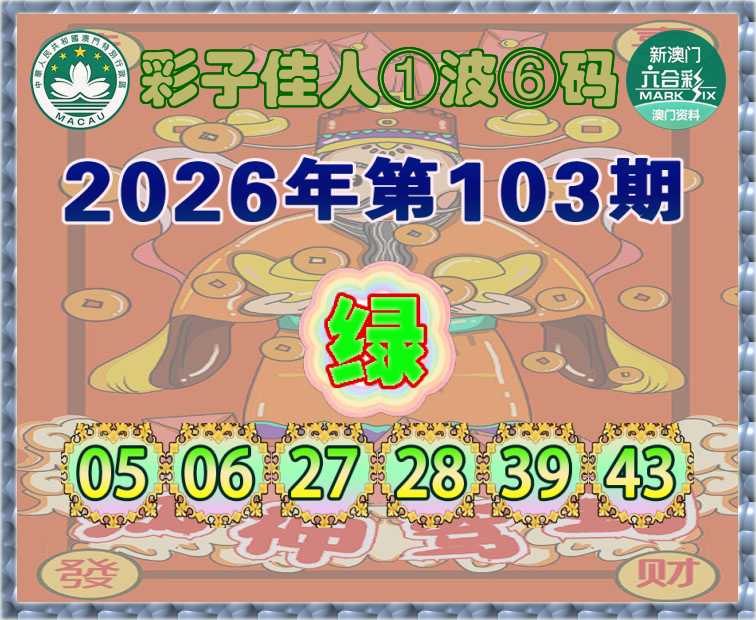 103期:『彩子佳人』 ①波⑥码【绿波】开:牛06准