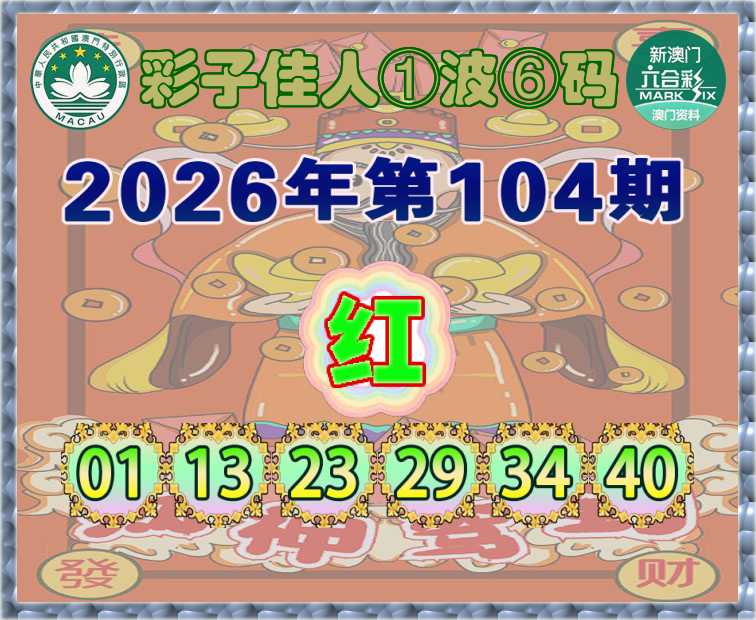 104期:『彩子佳人』 ①波⑥码【红波】开:马01准