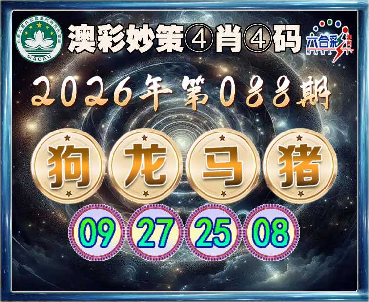 088期:【澳彩妙策】 ④肖④码【狗马猪】【09.27.25.08】开:龙27