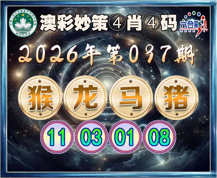 097期:【澳彩妙策】 ④肖④码龙马猪】【11.03.01.08】开:猴11
