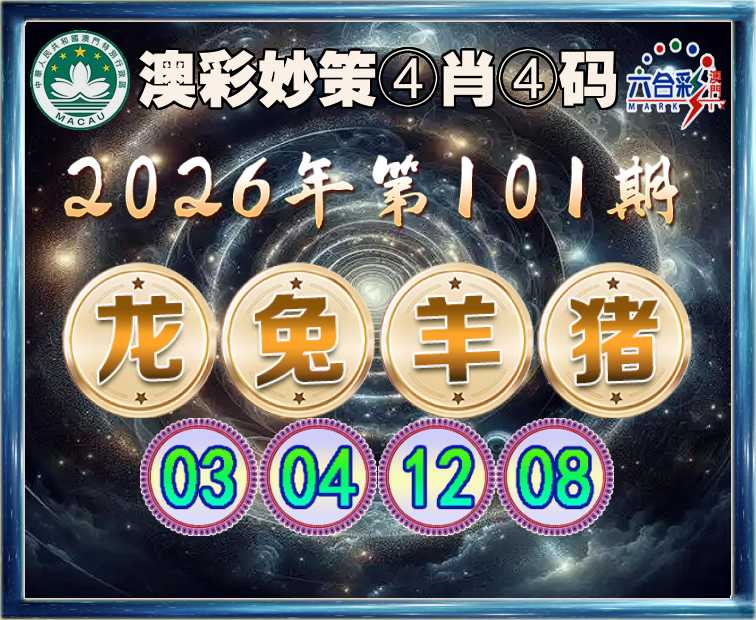 099期:【澳彩妙策】 ④肖④码【鸡马猪】【46.01.12.08】开:羊12