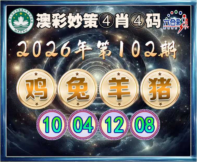 102期:【澳彩妙策】 ④肖④码【鸡兔羊】【10.04.12.08】开:猪20