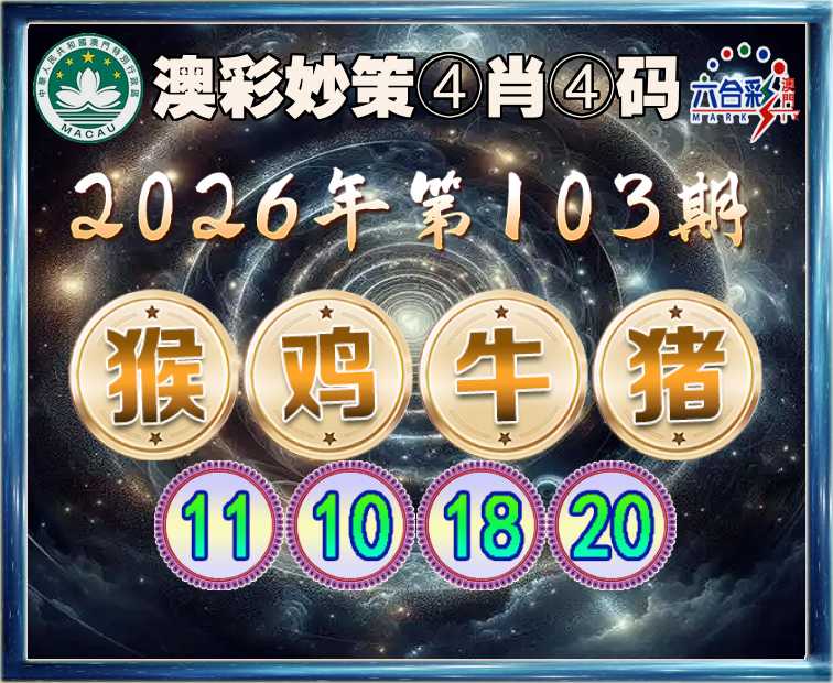 103期:【澳彩妙策】 ④肖④码【猴鸡猪】【11.10.18.20】开:牛06