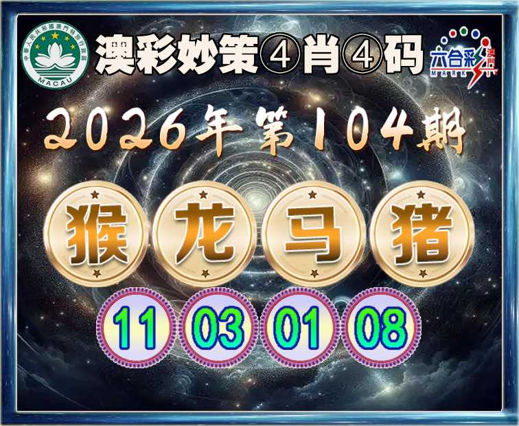 104期:【澳彩妙策】 ④肖④码【猴龙猪】【11.03.01.08】开:马01